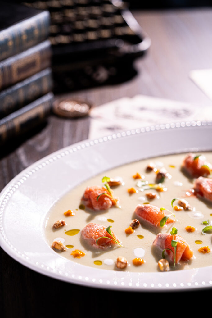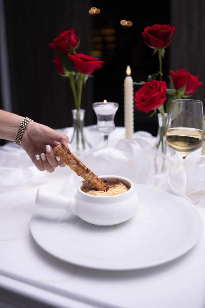 Queso Brie cubierto en hojaldre, glaseado con mermelada de frutas y frutos secos, acompañado con pan rústico de masa madre